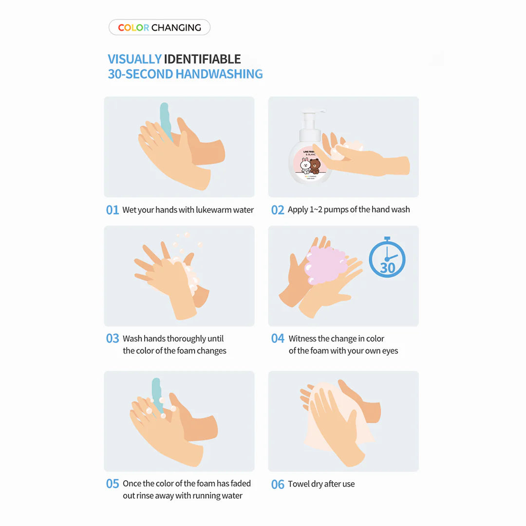 Deveop a proper handwashing habit with fun to use Ballon Blanc x Line Friends 99.9% antibacterial Color Changing Hand Wash.